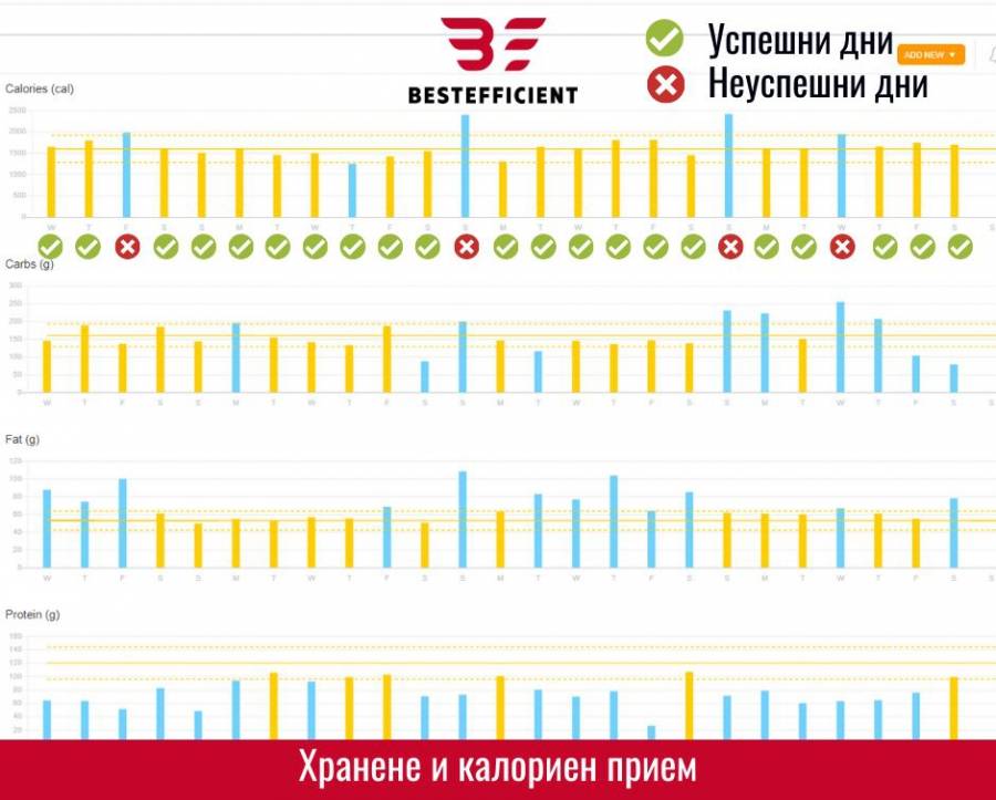 Храненето постоянно е бил факторът, от който в най-голяма степен зависи развиването на трениращия, а то се вижда още в идната графика, отразяваща големия прогрес за толкоз къс интервал от време.