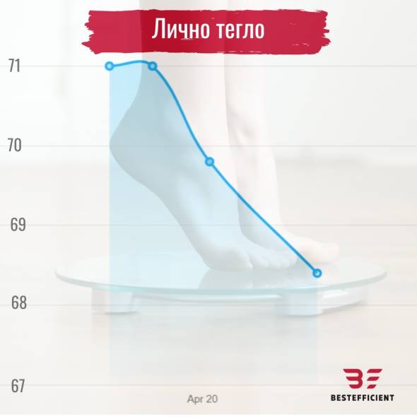 Ето историята в графики, извадени от приложението, на напредъка на клиентката ми, който тя реализира за към месец Извънредно състояние при все, че не в този момент стартира с тренировките.
