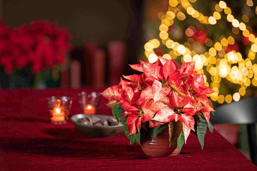 Пленителните поинсетии не са просто коледни цветя. Със своите блестящо червени, кремави, розови или кайсиеви звездообразни прицветници те внасят нюанс в интериора през цялата есен и зима. Но точно в този момент, в разгара на празничния декември, се радваме най-вече на тяхната магия – те допълват топлината и уюта на зимните вечери вкъщи и основават същинска коледна атмосфера.