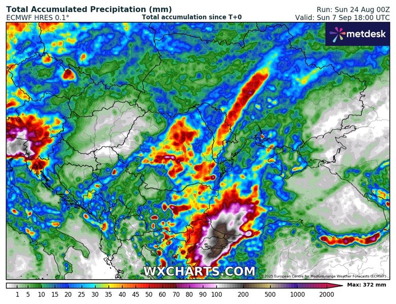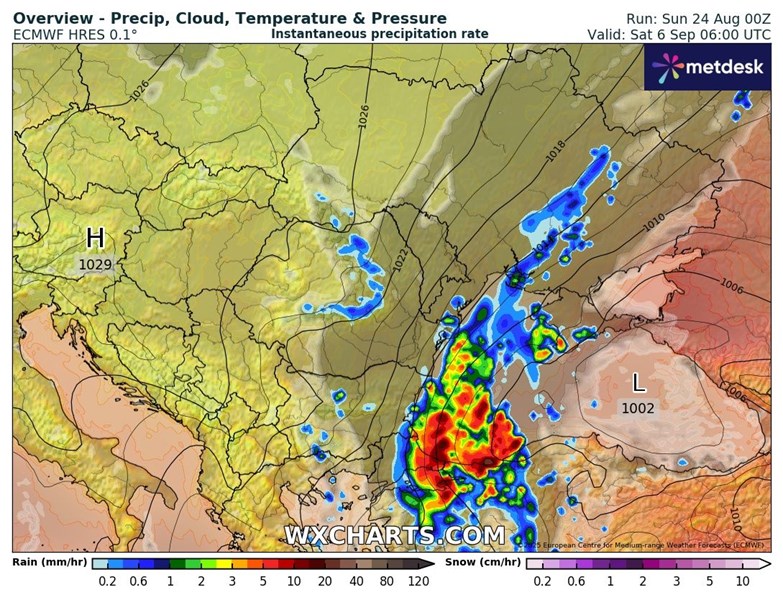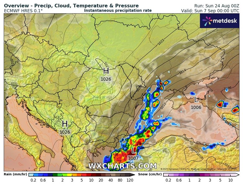 Студен атмосферен фронт доближава Балканския полуостров и може да провокира извънредно мощни стихии с проливни превалявания по Южното Черноморие и в Северозападна Турция на 6 и 7 септември.