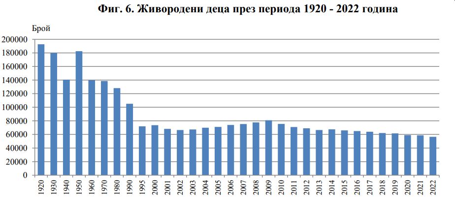 Общо в България през 2022г. са се родили 56 917 дечица . Въпреки дребната разлика с предишни години, раждаемостта продължава да спада. Отчели сме най-ниската стойност от столетие насам, сочат данни на Националния статистически институт.