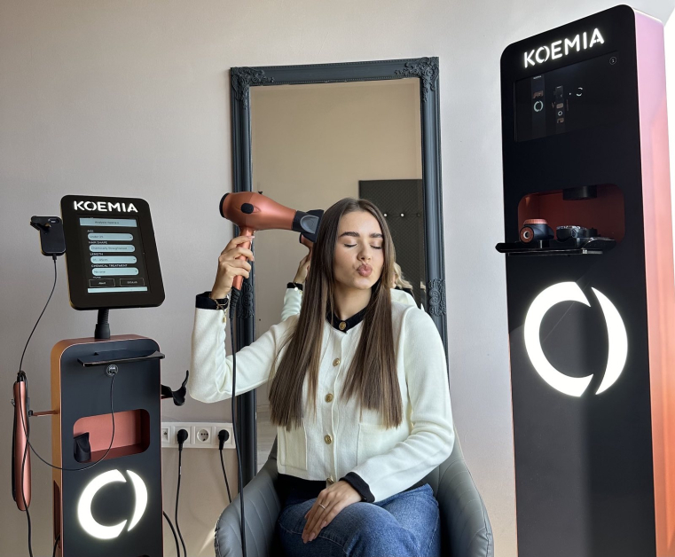 Системата KOEMIA, показана за първи път в България след Италия, употребява изкуствен интелект за разбор на положението на косата. Тя комбинира осем разнообразни бази от натурални екстракти, с цел да сътвори персонализирана терапия, съобразена с самостоятелните потребности на клиента. След диагностиката, лечението включва потребление на сешоар с ултразвуков дифузер, който в допълнение подхранва косата с екстракти .
