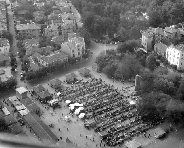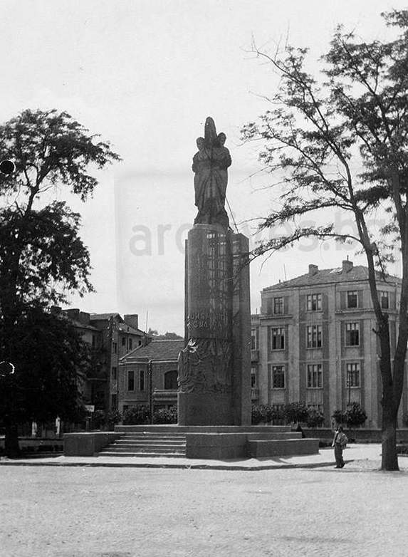 С идването на комунизма макет с естествени размери остава на площада, само че през 60-те години е решено да бъде отстранен поради градежа на постройката на проектанската организация.
