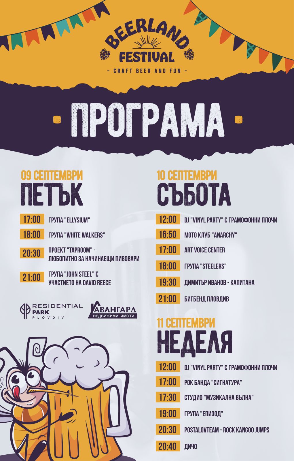 Пловдив ще изпрати лятото с тридневен празник на крафт бирите. BEERLAND ще се състои за първи път този уикенд – 9, 10 и 11 септември и ще съчетае доста рок музика на сцената, игри и занимания, релакс зони, детски центрове, занаятчии, вкусна храна с доста десерти и, несъмнено, доста прясна, студена крафт бира.