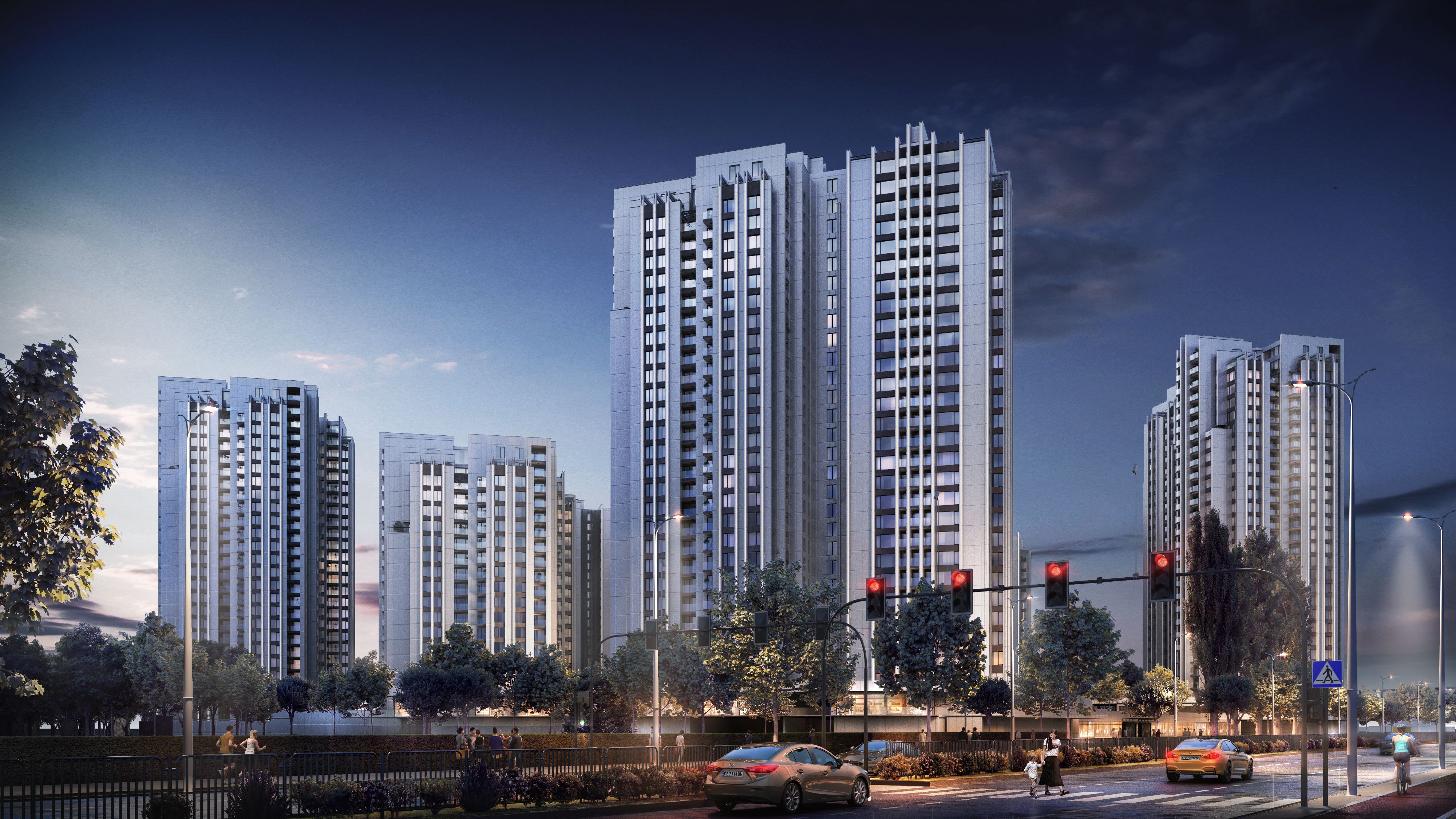 Трите модула са с 25, 21 и 17 етажа, като към всеки има един спомагателен пентхаус, като общият брой на жилищата е 675.
