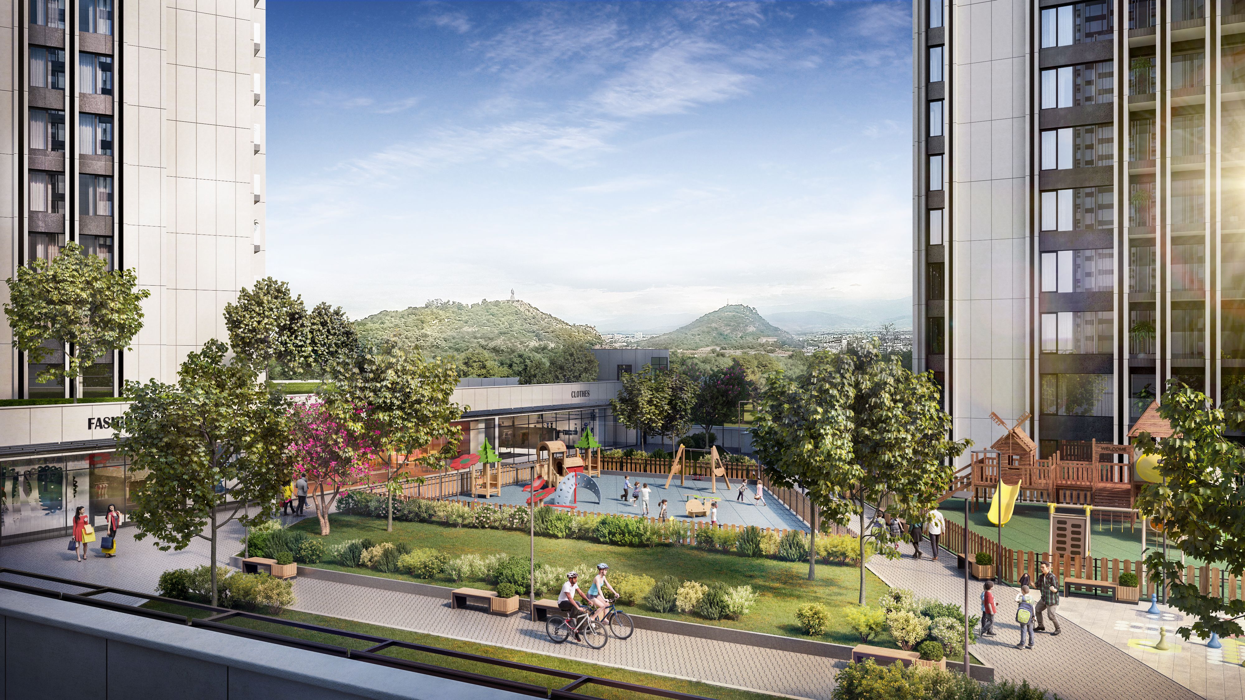 Партерите и долните етажи на модулите ще бъдат с публични функционалности и там ще бъдат ситуирани заведения за хранене, клубове, спортни зали, магазини, обслужващи обекти. В зелените площи ще има детски площадки, зони за релакс, велоалеи.
