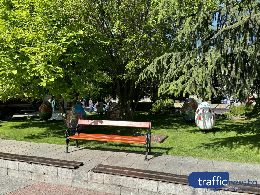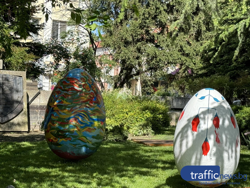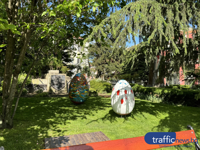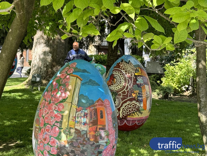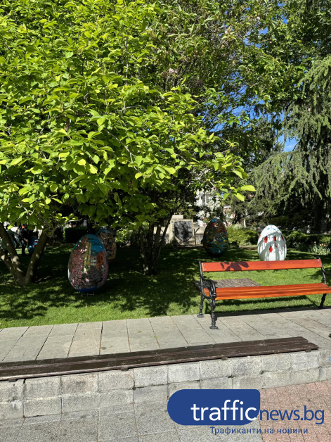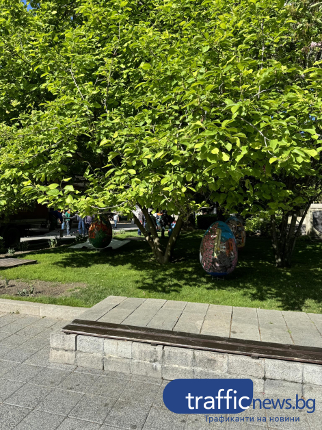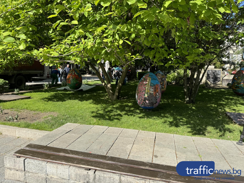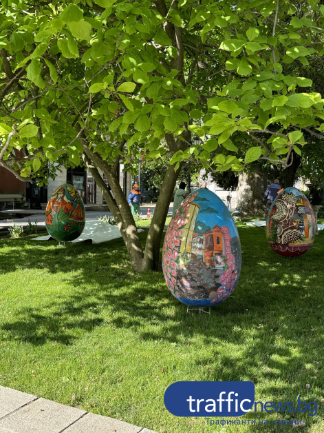 Красивите великденски яйца, рисувани от ученици на Националната художествена гимназия " Цанко Лавренов " и Националната гимназия за театрални и екранни изкуства още веднъж красят зелените площи пред Община Пловдив. Репортер на TrafficNews.bg видя по какъв начин подреждат яйцата в зелените площи пред Общината.