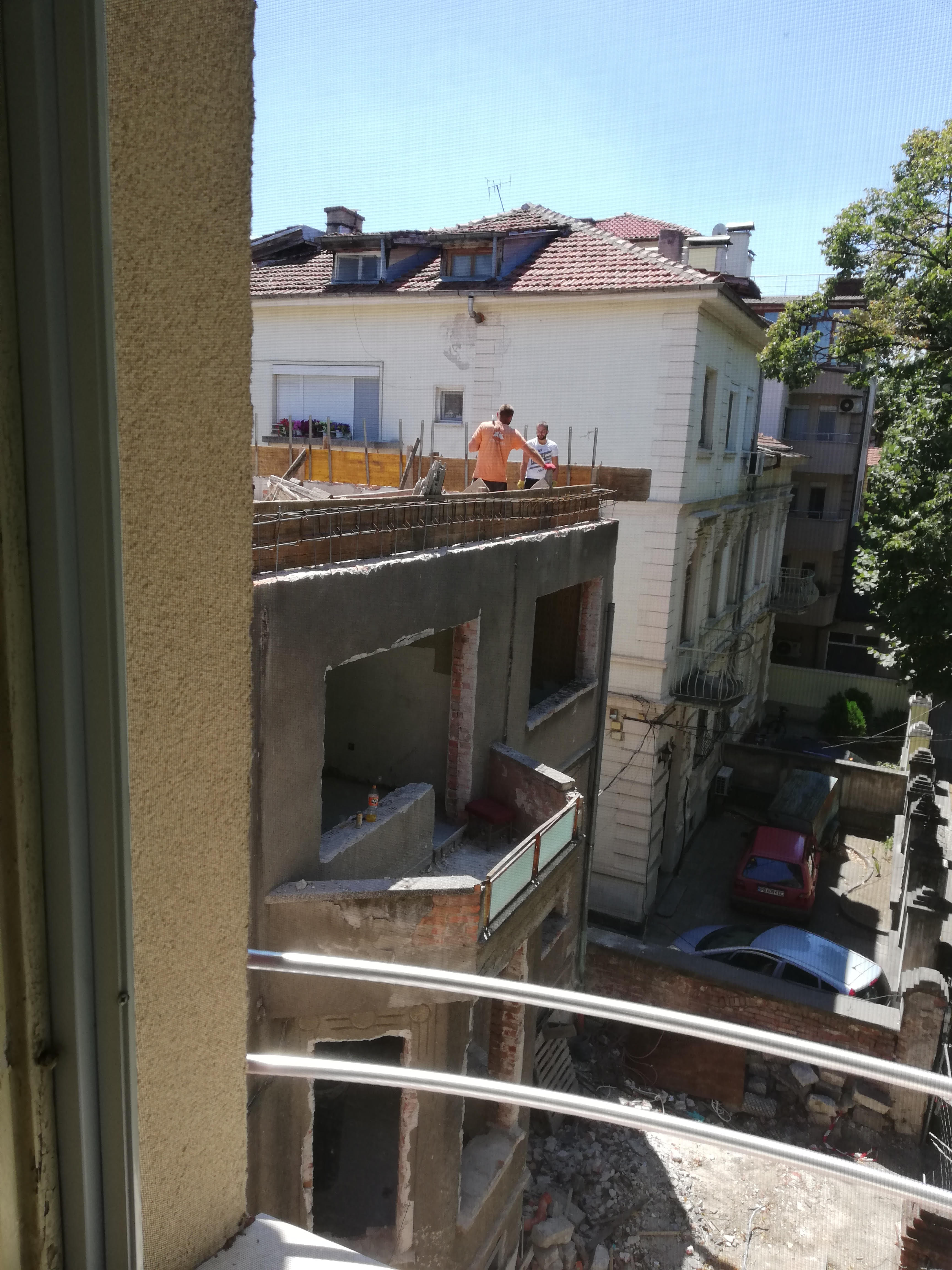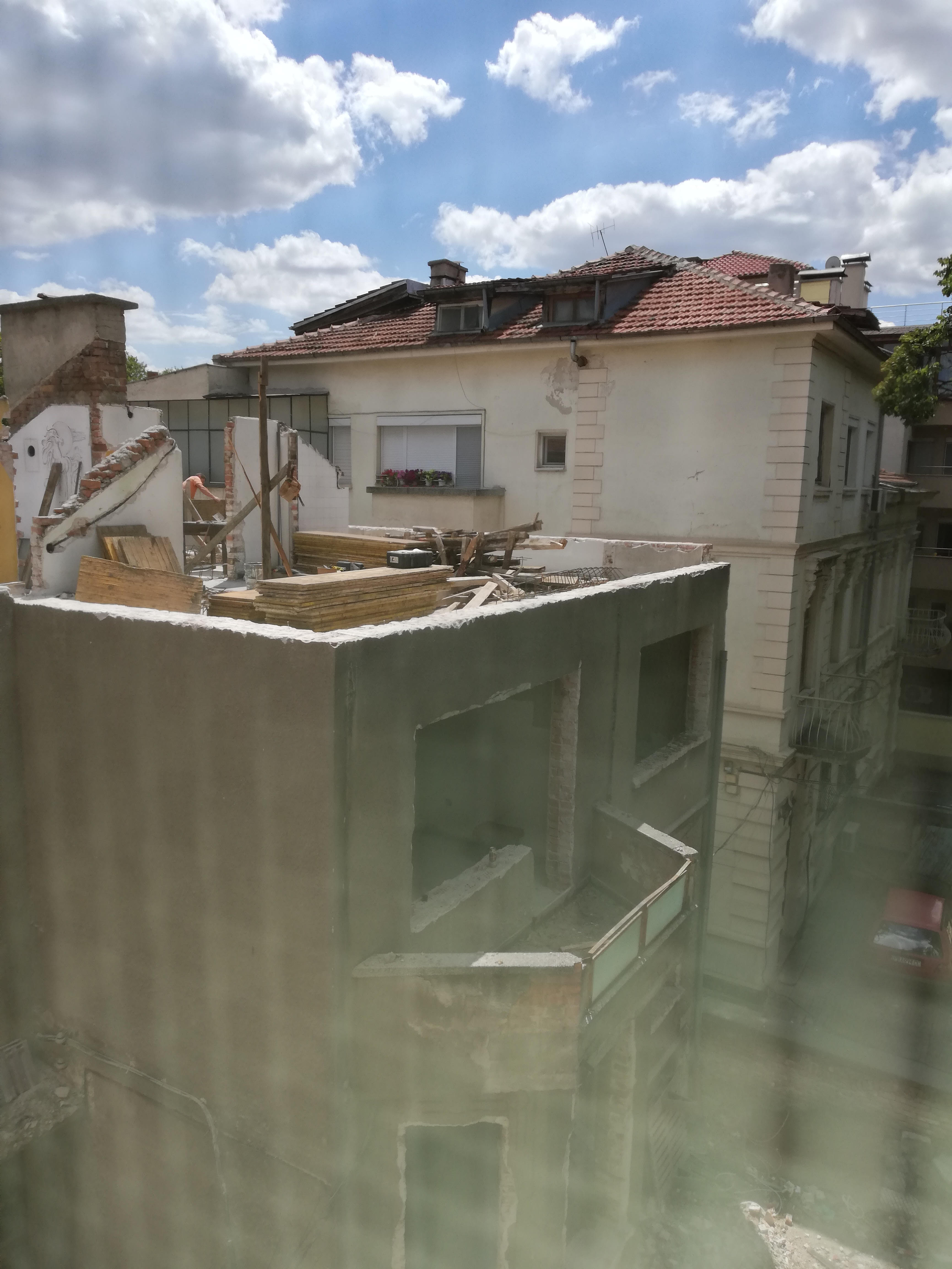 „ Там имаше двуетажна къща с таванско помещение, на терен, в който аз и брачният партньор ми сме притежатели на 1/6 идеални елементи. През месец март започнаха ремонтни действия, които обаче скоро прераснаха в напълно нов градеж. Подмениха се носещи градивни детайли на къщата, оформи се нов жилищен етаж, като се наляха две нови плочи и кота корниз и кота било бяха повишени с към 60 см. Сега е самостоятелен нов полуетаж. Преди, през прозорците на нашето жилище виждах прилежащата къща, а сега тя към този момент е закрита от покрива ” разяснява пред TrafficNews Милка Сербезова.