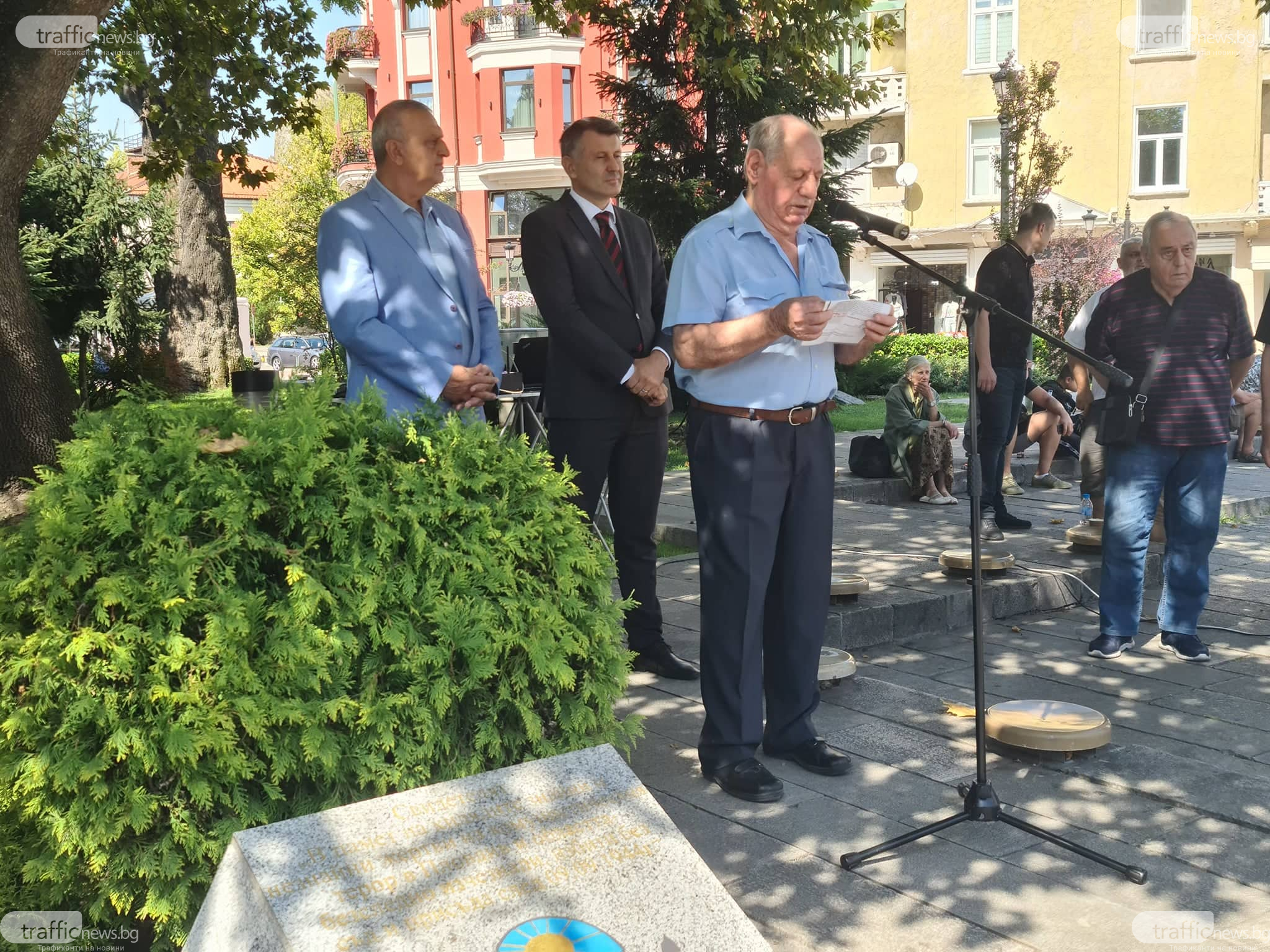 Цветя и венци бяха положени пред паметника " Свидетелят " на пл. " Стефан Стамболов ". Събитието, което се организира годишно на 9 септември, бе проведено от Съюза на репресираните от комунистическия гнет в Пловдив.