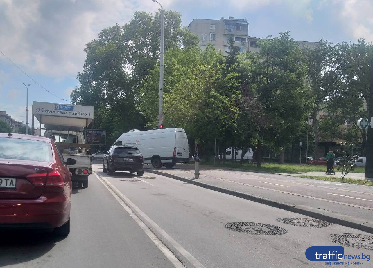 Читателите ни описаха, че бусът се е движил и по едно и също време е прекосявал през зелената повърхност, тротоар, велоалея, а най-сетне е минал през пешеходната пътека и е излязъл най-отпред, пререждайки всички коли, които са изчаквали на светофара.