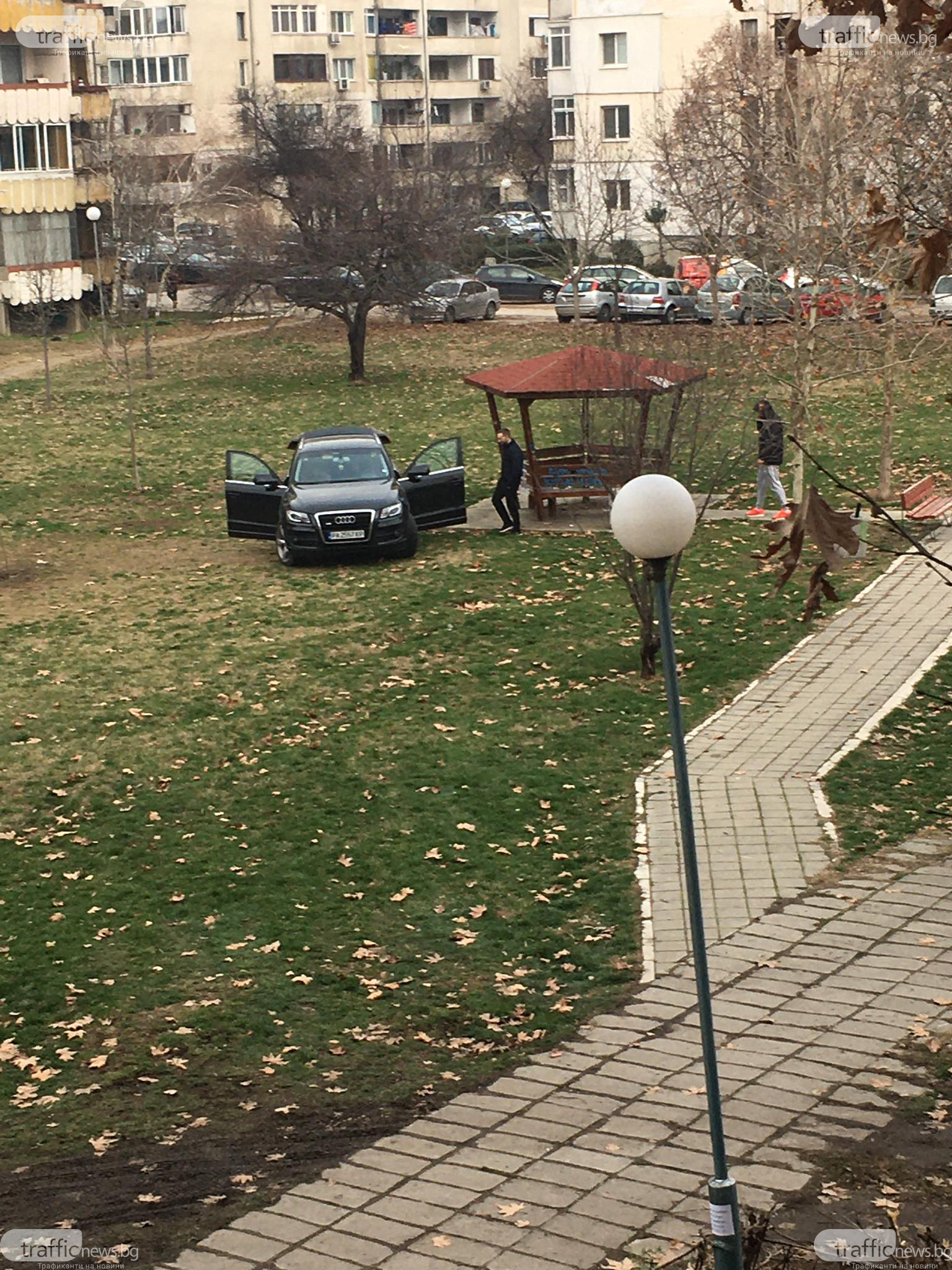 Пловдивчани взеха решение да си подреден угощение в пловдивски парк, като погазят с колите си тревните площи. Ситуацията се е развила в квартал Гагарин на улица „ Барикадите ” 22, а за парадокса алармира четец на TrafficNews. Той описа, че въпросните мъже, които са изглеждали в нетрезво положение, са влезнали с автомобила в парка и са го позиционирали до беседката, като по думите му са почнали да си вършат скара. Нещо, което е неразрешено – нарушава както тревните площи, по този начин и спокойствието на фамилии, които разхождат децата си в парка през обедните часове.