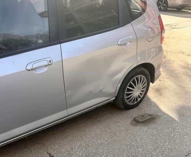 Той споделя и фрагменти от случката. На тях се вижда маневриращият хеджбек, както и блъснатата кола. От споделената фотография се виждат леки вреди по една от вратите.