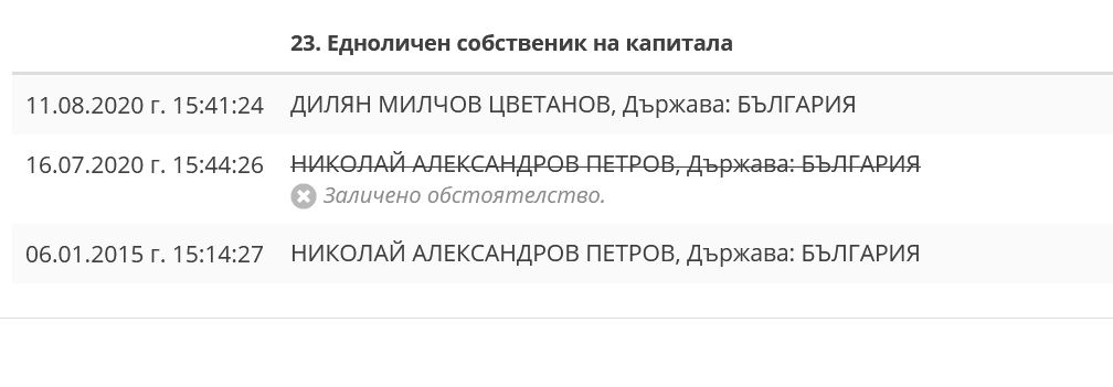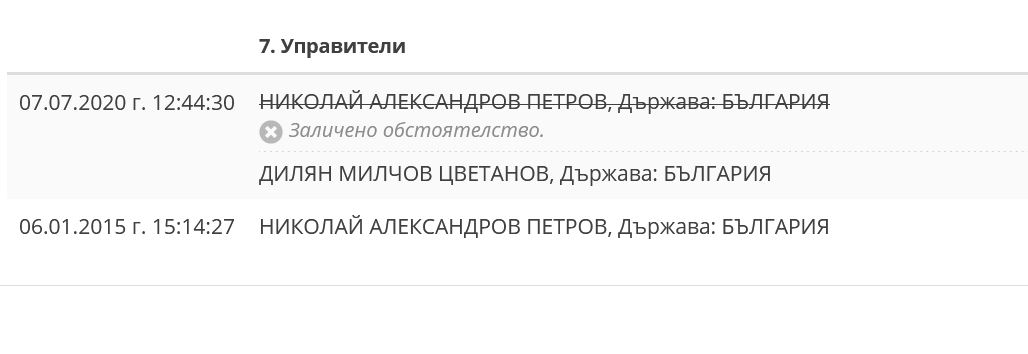 През 2020 година Николай Александров Петров към този момент не е шеф на компанията, на негово място е вписан Дилян Милчов Цветанов. Той е обвързван и с други компании с разнообразна активност и стартирани с невисок капитал от 5-10 лв.. Но уеб сайтът им mebelnaborsa.bg е към момента деен.