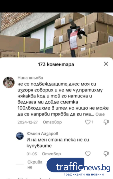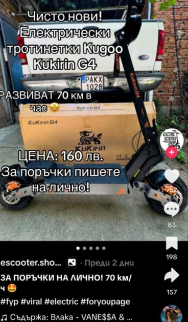 Невена от Пловдив е желала да зарадва 15-годишния си племенник, купувайки му тротинетка. От дълго време младежът мечтае за транспортното средство. В понеделник вечерта, инцидентно дамата попада на публикация в TikTok за продажба на артикули, импорт от Англия. В приложението е оповестена фотография на ел.тротинетки за 160 лв., която е привлякла вниманието на Невена.