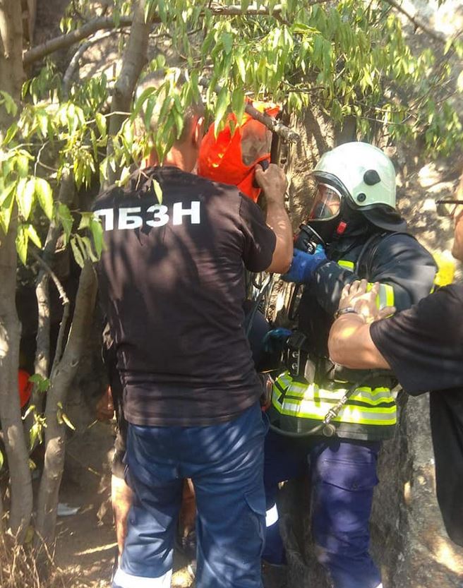 Работата на спасителите била затруднена от скалистия терен и острите каменни ръбове.