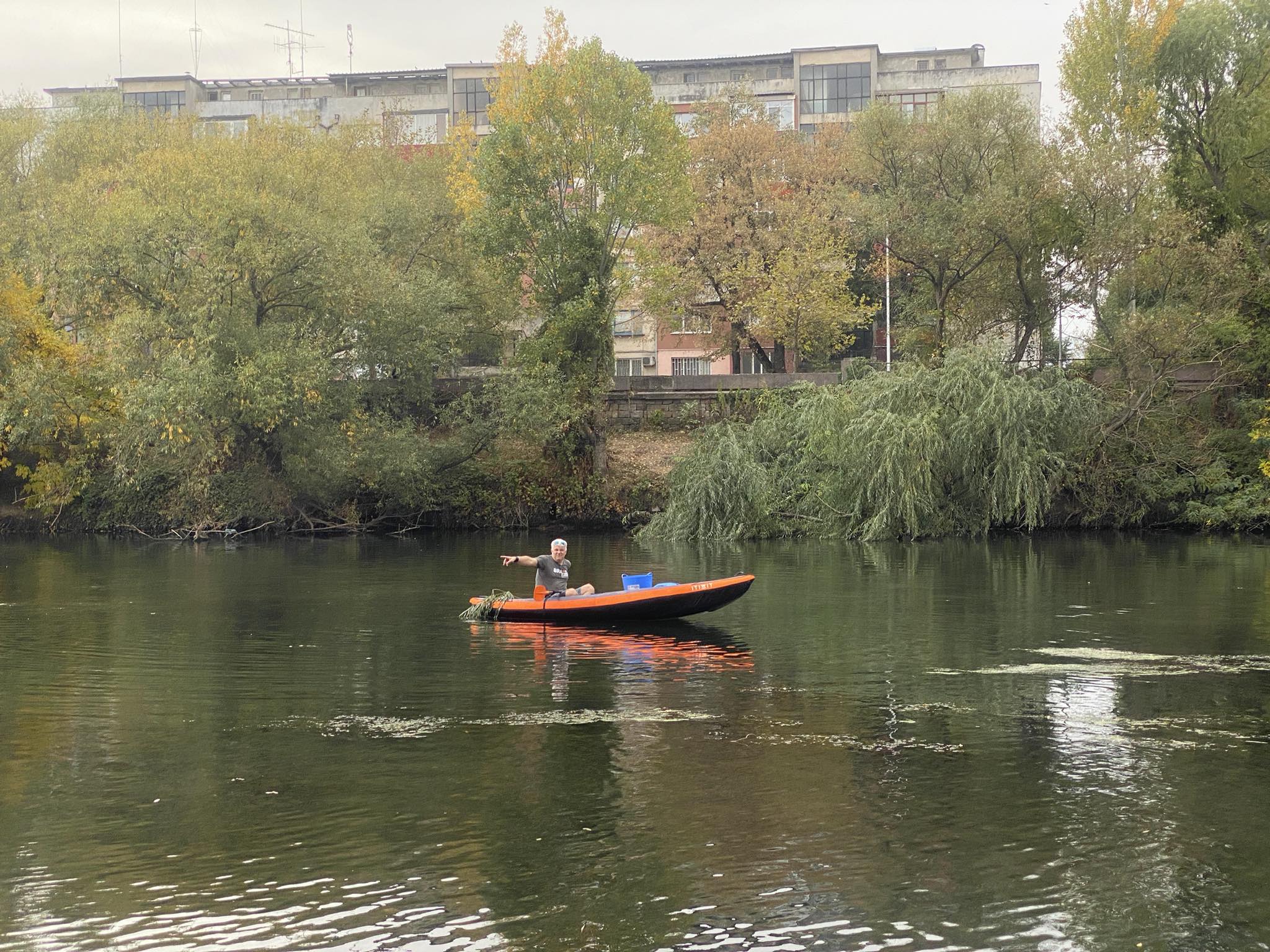Председателят на сдружението Веселин Костов се пусна с каяк по реката, с цел да помогне на риболовците да хвърлят рибата по- във вътрешността в реката, защото край самия бряг реката е доста заблатена, защото коритото не е почиствано с години.