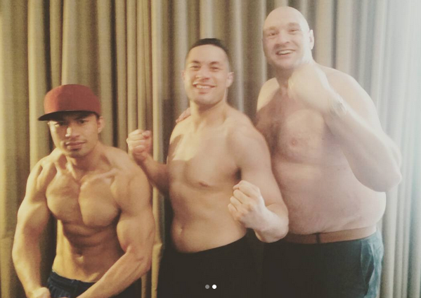 Невероятно, но факт! Джоузеф Паркър празнува с разсъблечения Тайсън Фюри