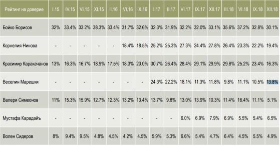 След юни 2018 настава поврат и в персоналния рейтинг на премиера Бойко Борисов . Той получава 30% утвърждение против 37% отрицание и 33% неутрални оценки. Той остава най-одобряваният водач на политическа партия.