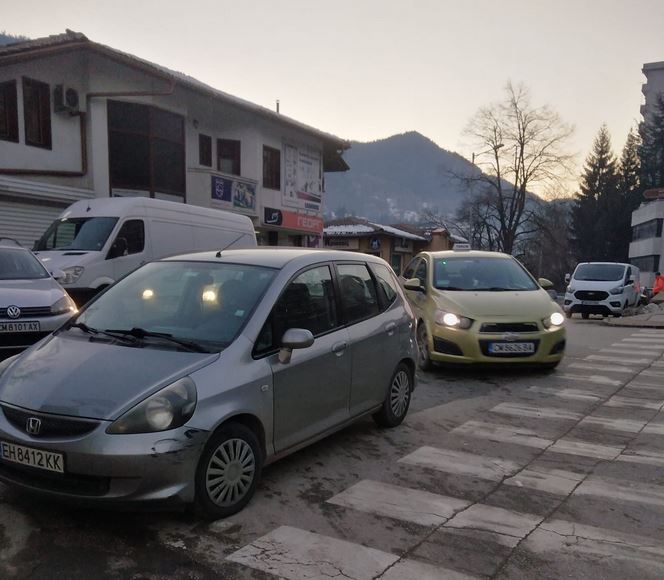 Шофьор с лек автомобил е избрал да паркира перпундикулярно на пешеходна пътека. При това - попадайки в кръстовището. Случката е снимана в град Смолян и възмущава локалните поданици.