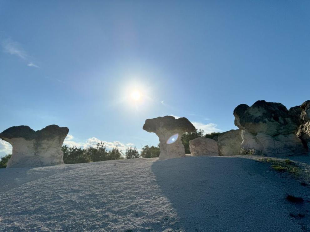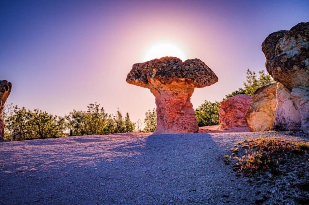 По пътя от Кърджали към Хасково , вляво от автомобилния път, покрай село Бели слой, ще откриете завладяваща естествена комбинация каменните гъби - една от най-големите атракции в този район.