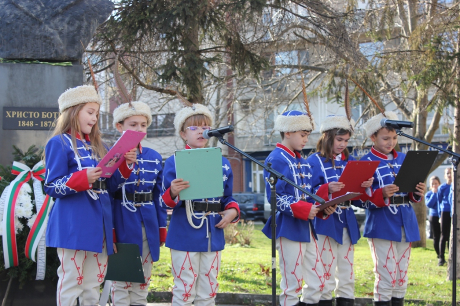По мотив 174-ата годишнина от рождението на революционера, стихотворец и журналист Христо Ботев негови стихове и патриотични песни извършиха пред бюст паметника му възпитаници от едноименното начално учебно заведение в Плевен.