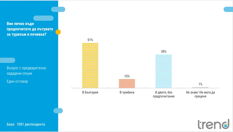 По мотив Световния ден на туризма Министерството на туризма показа взаимно със социологическа организация „ Тренд “ национално представително изследване за настройките на българите към туризма и почивките в страната, осъществено по поръчка на Министерството на туризма. Данните демонстрират, че България остава желаната дестинация за нашите сънародници – 51% от интервюираните декларират, че избират отмора у нас, до момента в който едвам 10% насочват интереса си към чужбина.
