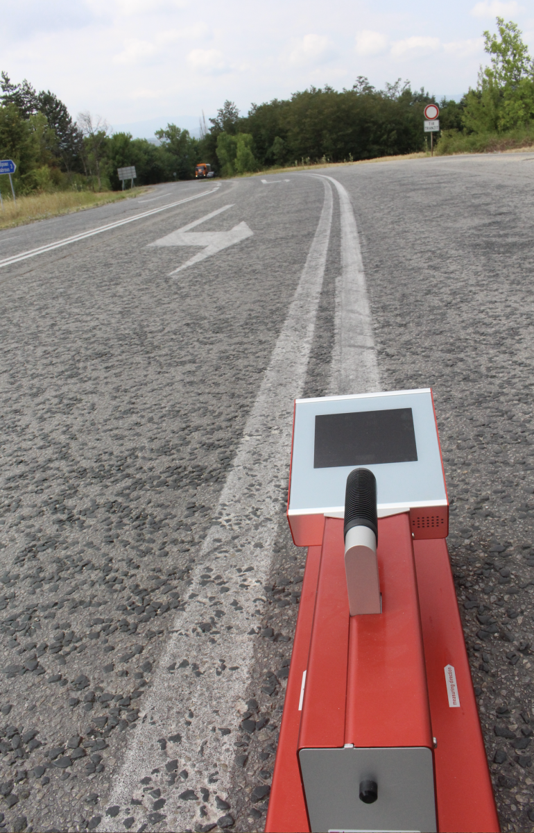 Измерване на светлоотразителността на пътната маркировка от специалистите на ЕЦТП, като индикаторите са в пъти под нормитавните условия.