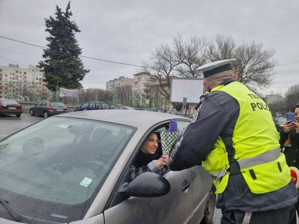 Празнични проверки: Полицаи подариха цветя на дамите зад волана
