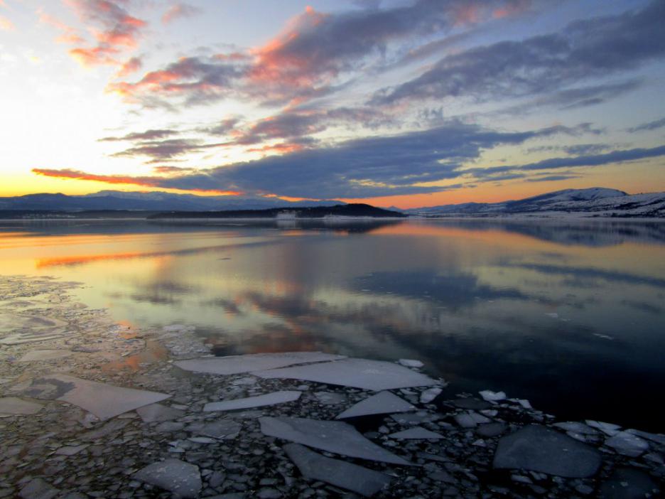 През зимата слънцето плъзва лъчите си по замръзналите води на язовира, а контрастът с белотата на снега и цветните усмивки на слънцето на фона на ледените парчета край брега е неизразим.