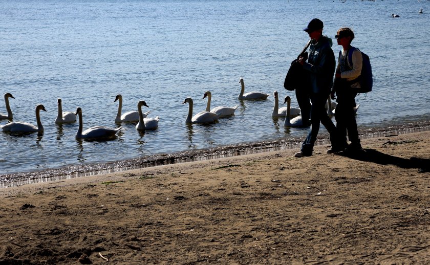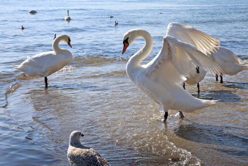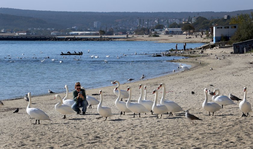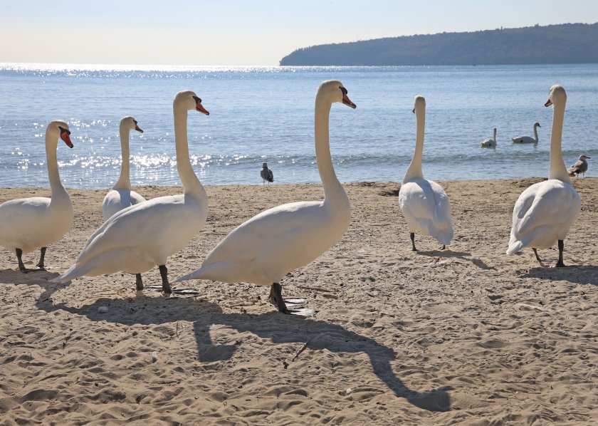 По традиция ято от 30 - 40 лебеда зимуват всяка година във Варна. Те са от предпазения тип глух лебед (Cygnus olor) и през топлата част от годината живеят в скандинавските страни. За наслада на дребни и огромни красивите птици остават на варненския плаж до късна пролет, когато още веднъж отлитат на север.