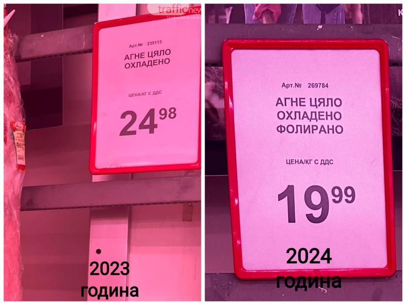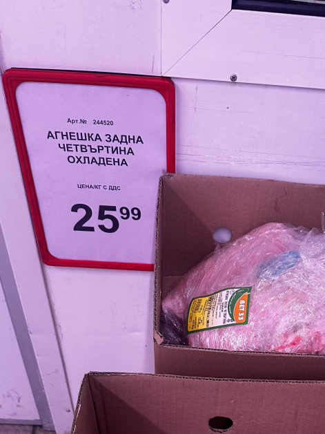 Например в „ Lidl ” агнешка задна четвъртина също е на цена от 20 лв. за кг, а предна е с един лев по-малко. Цената за агнешко месо с кост е 17 лв. за кг, като не се вижда смяна от миналогодишните цени. В " Kaufland " цените също не се разграничават по отношение на 2023 година- агнешка задна четвъртина е на цена от 20 лв. за кг, а предна може да бъде закупена за 19 лв. кг. Цените в „ Т-Маркет ” са сходни, но агнешка задна четвъртина е на цена от 22 лв..