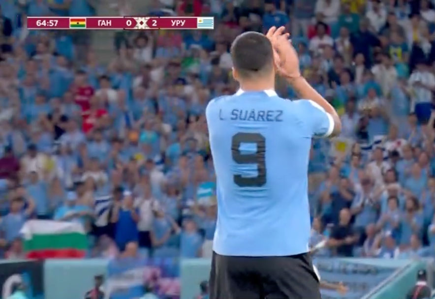 По време на дуела сред Гана и Уругвай феновете станаха очевидци на любопитен подробност. В 66-ата минута, когато една от звездите на южноамериканците Луис Суарес бе сменен и напускаше терена, телевизионните камери засякоха на заден декор да се вее българския байрак. Група почитатели бяха опънали родния трикольор на първия ред на стадион “Ал Джануб ”.
