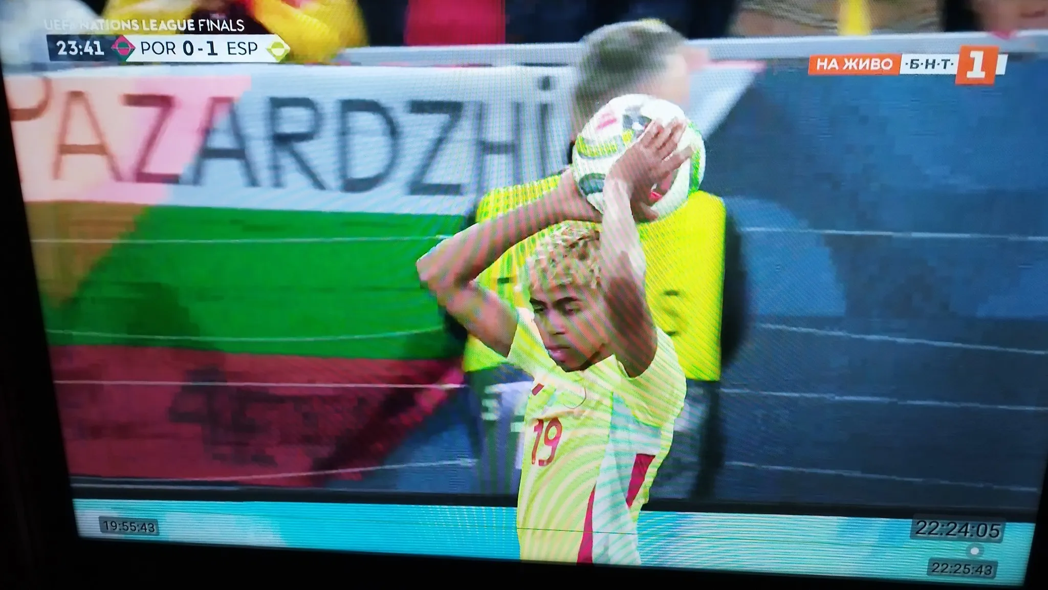 По време на финалния мач за трофея от Лигата на нациите, камерите уловиха непредвиден, само че радващ сърцето подробност – българският трикольор, гордо развят, с надпис „ PAZARDZIK “, се оказа в непосредствена непосредственост до едно от най-големите млади футболни открития – Ламин Ямал.