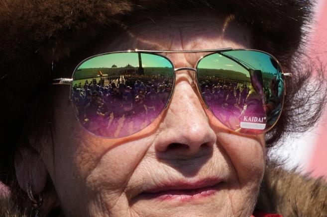 Много от тях носят черно-оранжевата лента " Свети Георги ", която обичайно се свързва с Деня на успеха.