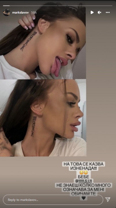 Въпреки че Марк живее и работи в Исландия, двамата са решени да продължат връзката си и дистанцията е последното нещо, което може да им попречи. А Сузанита очевидно хубавичко е хлътнала, тъй като си татуира името на Марк и то на много очевидно място. Гаджето й незабавно качи фотосите в сторито си.