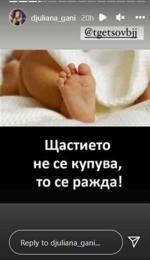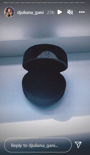 Джулиана подсказа за новината, като разгласява на стори празна кутийка от годежен пръстен и разясни, че почитателите ѝ могат да чакат фотоси на бижуто. Русокоската показа и фотоси на бебешки крачета с цитата: " Щастието не се купува, то се ражда " и е отбелязала новия си обичан.