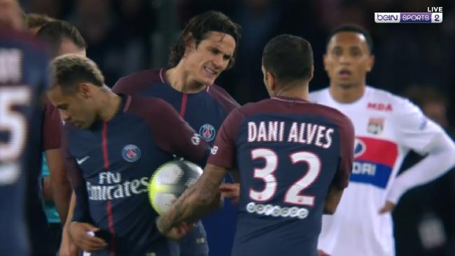 При един предшестващ директен свободен удар двамата забъркани участника към този момент бяха съумели да влязат в спречкване. Кавани изиска топката, но Даниел Алвеш пристигна и му я конфискува, с цел да я преотстъпи на своя съотечественик, пристигнал през лятото от Барселона с рекорден трансфер в историята на футбола.