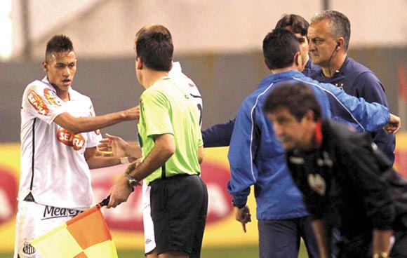 В тази история обаче наподобява, че е мъчно да се откаже каквото и да било на Неймар. През 2010 година треньорът му в Сантос Доривал Жуниор му бе забранил да бие дузпи, а нападателят реагира с няколкократни псувни по адрес на наставника, с което му докара бяс в идващите няколко дни. Уловеният от телевизионните камери скандал провокира горещи диспути в Бразилия, а треньорът Рене Симоеш отсече сбито: „ Създаваме страшилище.”
