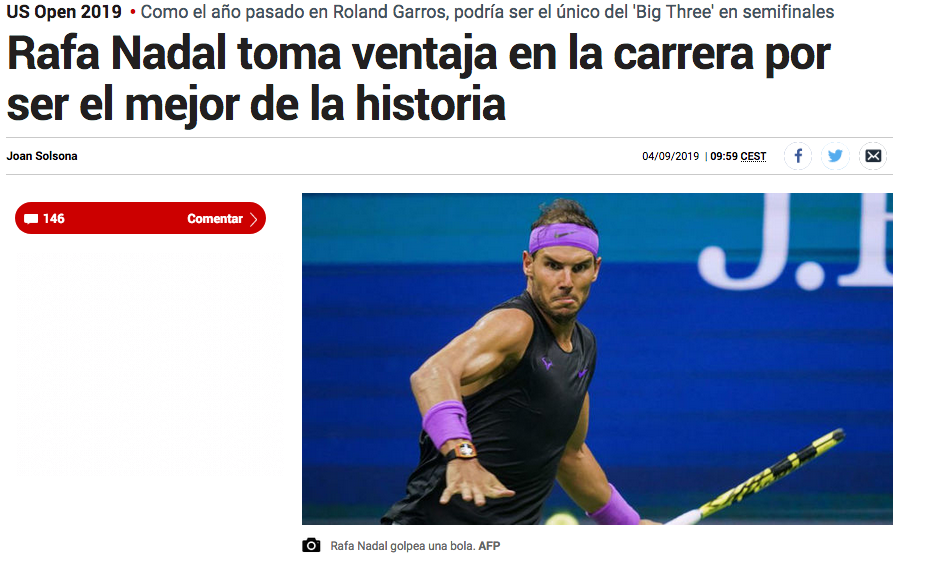 “Рафа Надал взима преднина в борбата за най-хубав в историята на тениса”, написа Marca. Ако Матадора победи на US Open, той към този момент ще има 19 трофеи от “Големия шлем” и ще е единствено на една от рекордьора Федерер. Трябва да се върнем надалеч обратно във времето - чак през 2004 година, с цел да забележим 1/2-финали на шампионат от “Големия шлем” без нито един от “голямата тройка”: Федерер, Надал и Джокович.