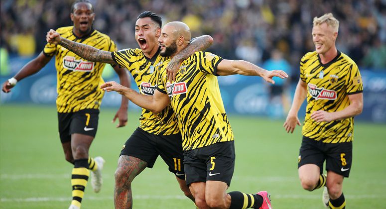 На второ място е АЕК. " Жълто-черните " се постановиха мъчно с 1:0 над Атромитос. Гола вкара Нордин Амрабат от дузпа в добавеното време. Преди това футболистите на АЕК направиха голям брой пропуски, които бяха на път да ги лишат от трите точки. Тимът от Атина е в серия от 4 следващи победи в Суперлигата и измести от втората позиция Волос.