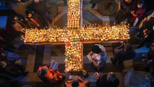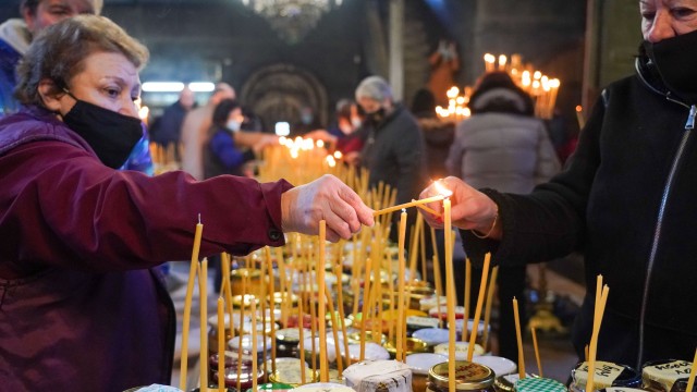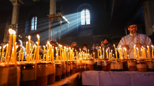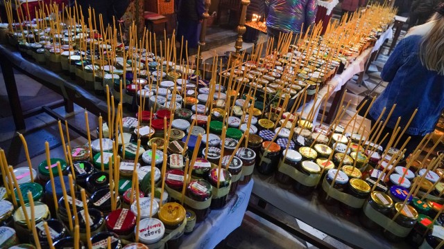След това хората взимат бурканчетата си, тъй като се има вяра, че осветеният мед е лековит.
