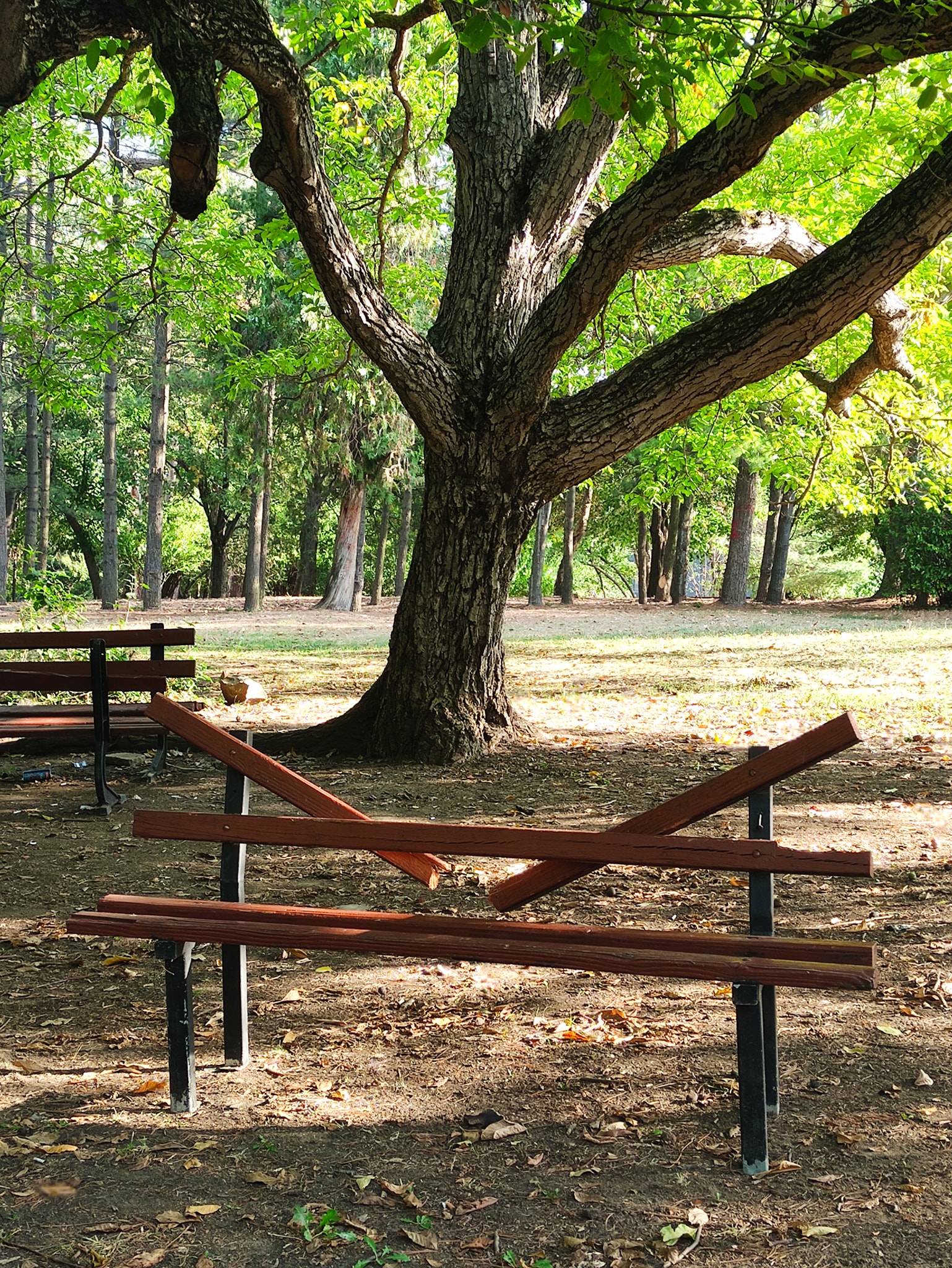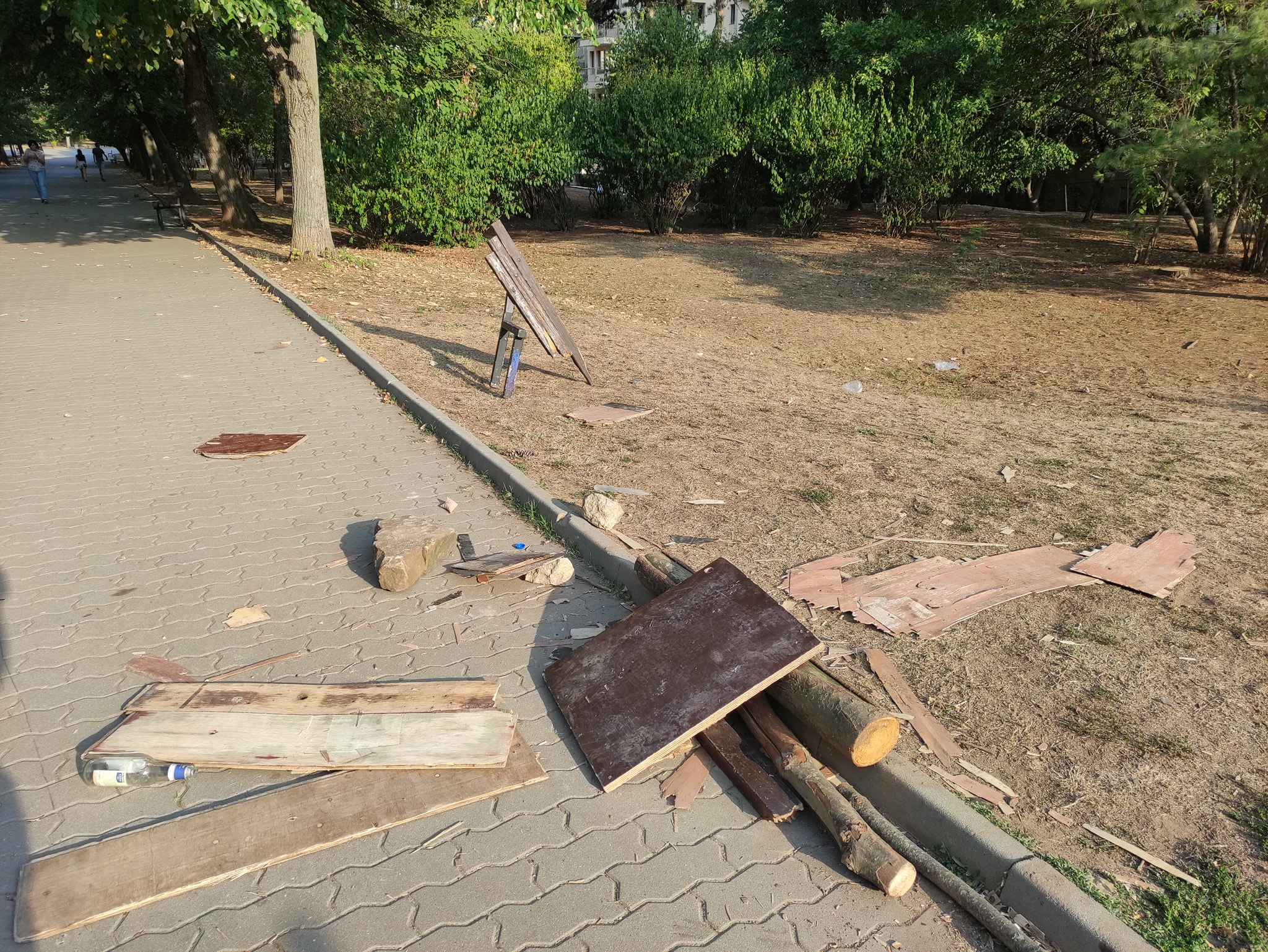 Жената публикува снимки както на пречупените дървета, по този начин и на изпочупените пейки, които откакто бъдат ремонтирани, е доста евентуално още веднъж да бъдат счупени и изкъртени с паветата, които са разместени из парка.