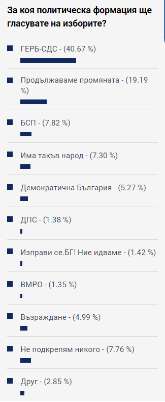 Любопитно усещане прави, че точно 7 на 100 е броят на интервюираните, които декларират, че няма да поддържат никого от претендентите в парламентарните избори.