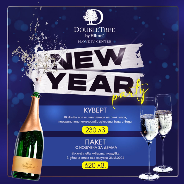 Подарете си незабравимо прекарване и посрещнете новата 2025 година на международно равнище в DoubleTree by Hilton Plovdiv Center. Насладете се на първокачествен комфорт, празнична вечеря и страхотна стратегия, която ще направи началото на новата година необикновено.