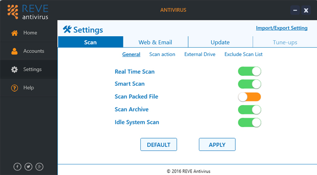 Антивирусът дава необятен набор от варианти за конфигурация на функционалността – от секцията Settings можете да разрешите или възбраните доста от характерностите и изцяло да настроите държанието на Reve Antivirus за разнообразни обстановки.