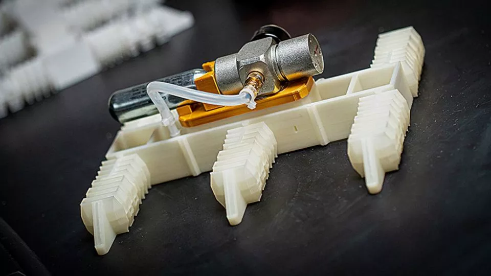 Екип от учени на Bio-Inspired Robotics Lab в Университета на Калифорния, Сан Диего, управителен от професор Майкъл Тъли, е основал робот, който може да върви без електричество, употребявайки единствено патрон със сбит газ. Роботът е напълно 3D отпечатан от един материал в един цикъл.