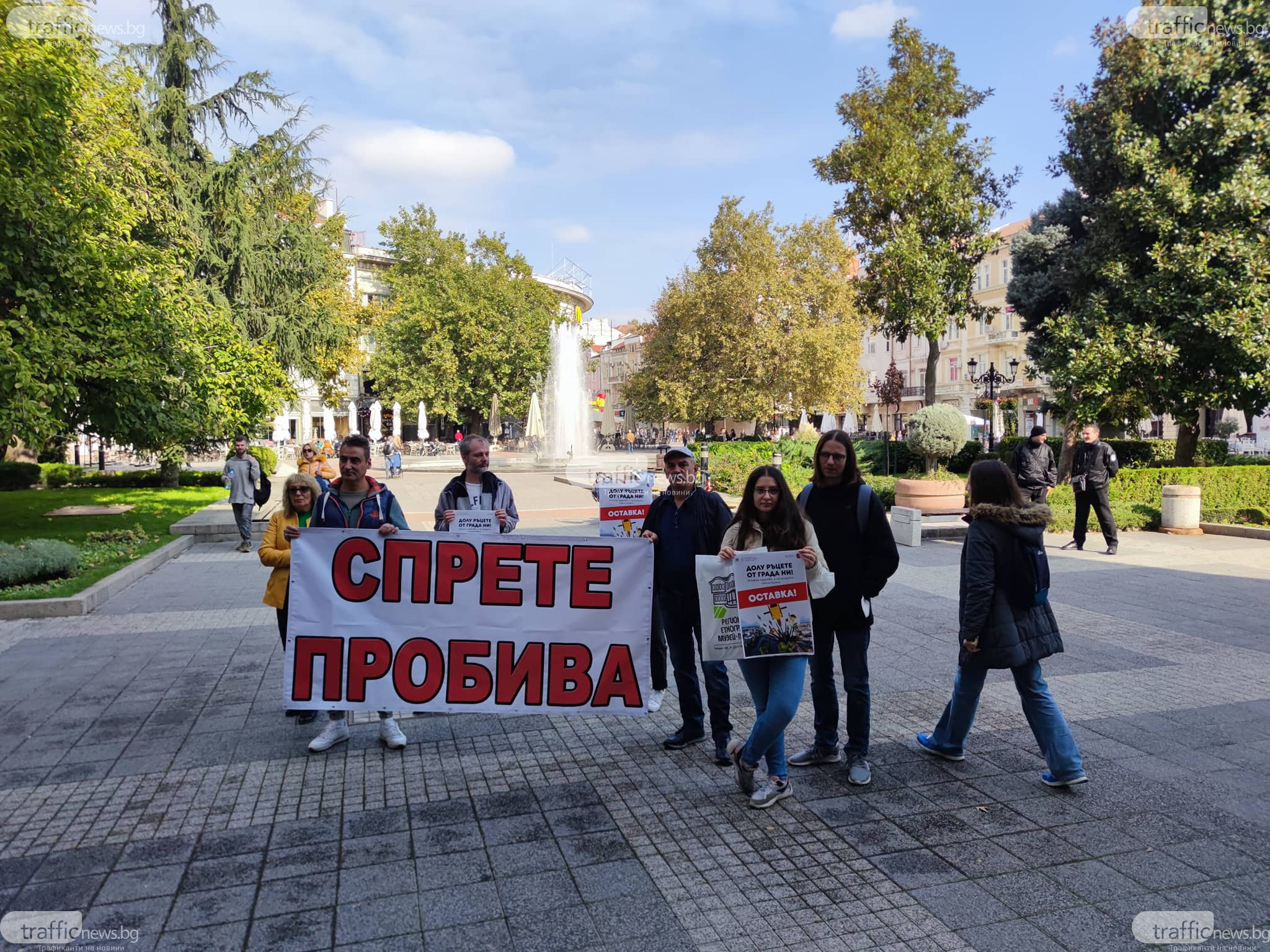 Подписка от над 800 души е подадена в Общинския съвет и община Пловдив за прекъсване на плана за пробива под Водната палата. Пред община Пловдив бяха близо 20 души от Инициативния комитет, които бяха разпънали плакати против желанията на градските управляващи. При внасянето на подписката Тони Стойчева изиска да се види със зам.кмета Величко Родопски, който замества Здравко Димитров. Самият той слезе при протестиращите, с цел да чуе техните претенции. Те го попитаха дали ще спре пробива на Водната палата до решението на изключителната сесия, която е планувана за сряда. Тъй като не е ясно дали този план ще бъде осъществен, от компанията реализатор не престават да разрушават и унищожават зоната.