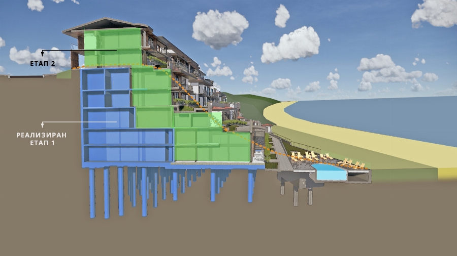 Реално строителството на юг от Созопол стартира в края на 2018 година В началото институциите твърдяха, че това е единствено подпорна стена поради свлачището. Миналото лято обаче се появиха фотоси в обществените мрежи, от които е видно, че градежът прилича на 4-етажна постройка.