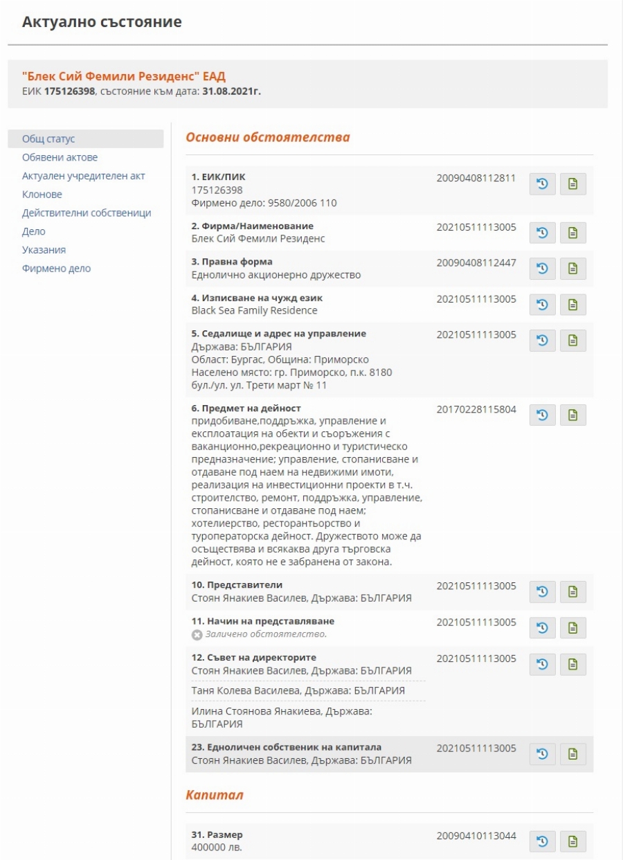 Продадена е компанията „ ГБС-Турс “, притежател на това право. През май месец тази година „ Главболгарстрой Холдинг “ АД трансферира сдружението на 47-годишния Стоян Василев – общински консултант от партия МИР в Приморско, който към този момент е негов едноличен притежател. От тогава то е преименувано на „ Блек Сий Фемили Резиденс “ ЕАД.