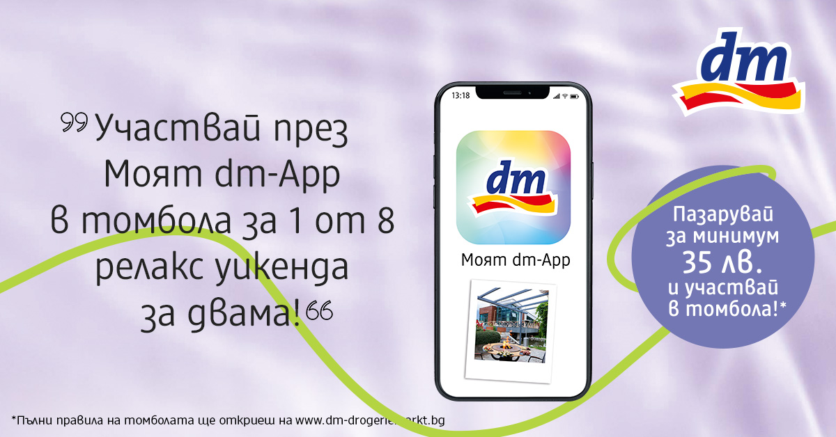 * За да участвате, е належащо да имате навършени 18 години и да сте конфигурирали мобилното приложение Моят dm-App.